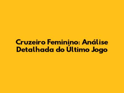 Cruzeiro Feminino: Último Jogo, Resumo E Análise Completa
