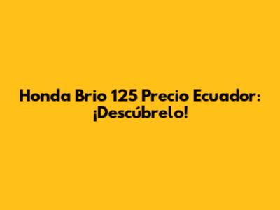 Honda Brio 125 Precio Ecuador: ¡Descúbrelo!