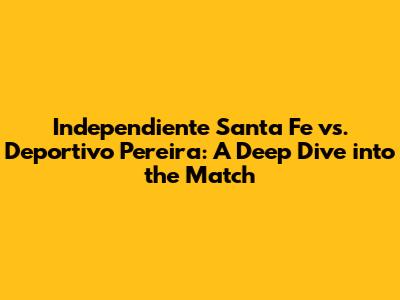 Independiente Santa Fe Vs. Deportivo Pereira: Match Analysis & Predictions