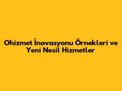 Ohizmet İnovasyonu Örnekleri Ve Yeni Nesil Hizmetler