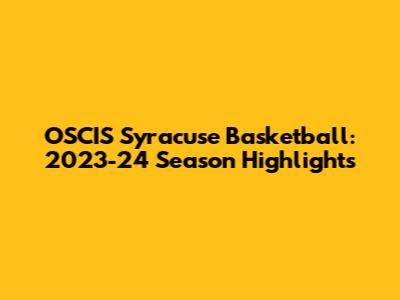 OSCIS Syracuse Basketball: 2023-24 Season Highlights