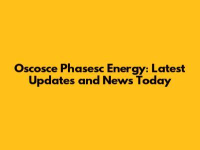 Oscosce Phasesc Energy: Latest Updates And News Today