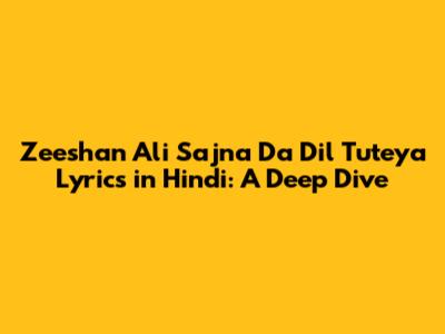 Hey guys! Ever stumbled upon a song that just hits you right in the feels? That's definitely the vibe of "Sajna Da Dil Tuteya" by Zeeshan Ali. This track isn't just a tune; it's a journey through the heartbreak and emotional turmoil of lost love. In this article, we're going to break down the lyrics, explore their meaning, and provide a detailed Hindi translation. So, grab a cup of chai, get comfy, and let's dive into the world of Zeeshan Ali's masterpiece! The song, "Sajna Da Dil Tuteya," is a poignant expression of heartbreak, loss, and the pain of separation. Zeeshan Ali's vocals, coupled with the melancholic melody, create an atmosphere that deeply resonates with anyone who has experienced the sting of a broken heart. The lyrics, rich with emotion and cultural context, paint a vivid picture of the singer's suffering and longing. The song uses powerful metaphors and evocative language to capture the depth of the emotional pain, making it a universal anthem for anyone dealing with the aftermath of a failed relationship. It’s a song that speaks to the core of human experience – the pain of love lost and the struggle to move on. Zeeshan Ali's ability to convey such raw emotion through his music is what makes this song so captivating and memorable. The song's popularity stems from its relatable themes, the beautiful composition, and Zeeshan Ali's heartfelt delivery. It’s a testament to the power of music to connect people across cultures and backgrounds, united by the shared experience of love and loss. The lyrics delve into themes of betrayal, separation, and the enduring memories of a past relationship. The core message is the agony of losing a loved one and the difficulty of letting go. Zeeshan Ali captures the essence of this pain through his lyrics and the way he sings them, making the song an emotional powerhouse. The musical arrangement, with its blend of traditional and contemporary elements, enhances the emotional impact, drawing listeners further into the story being told. Understanding the lyrics, their Hindi translation, and the cultural context is key to fully appreciating the song's depth. The use of certain words and phrases carries a cultural weight that intensifies the emotional impact. Let’s get into the nitty-gritty and analyze the lyrics and their meaning in Hindi.